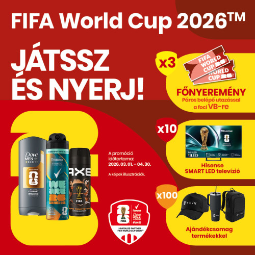 Vásárolj egy számlán minimum bruttó 50.000 Ft értékben bármilyen Rexona, Axe, Dove Men+Care vagy Dove terméket a játékban részt vevő Nagykereskedésekben, 2026. március 1. és 2026. április 30. között, és a Tiéd lehet a 100 db nyereménycsomag, a 10 db Hisense 65" Smart TV, vagy a fődíj 3 db páros meccsjegy egyike a Skócia-Brazília mérkőzésre.